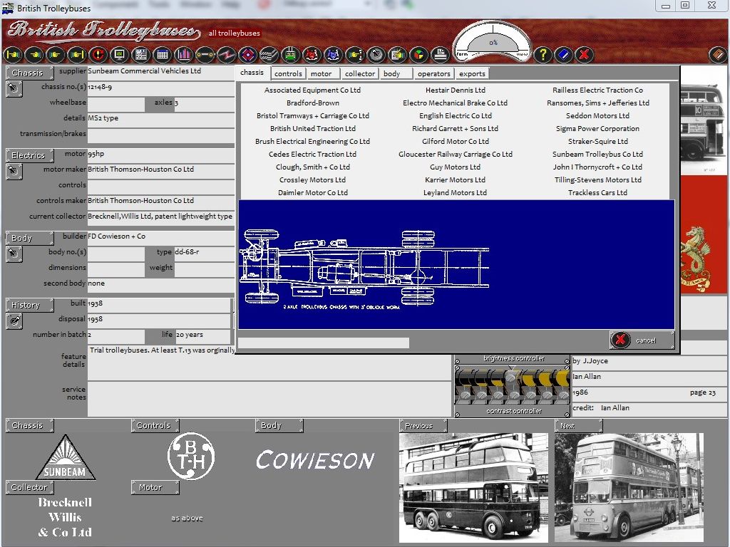 You can select trolleybuses by chassis, controls, motor, collector, body or operator.